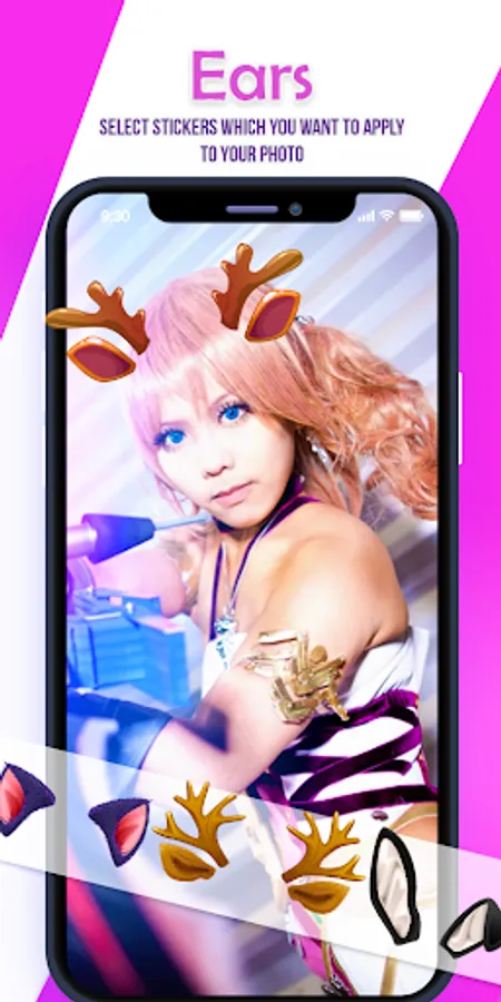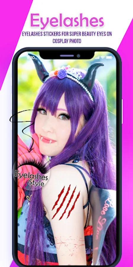Also one of Cosplay camera Pros is you will be able to add to your photo eyes , hair style , mouth , ears , glasses , colorful muzzle , Various types of guns for instance Sword – Hammer – riffle , as well as you can use numerous bloody stickers for awesome cosplay photo like Bloody wounds , blood sprays …