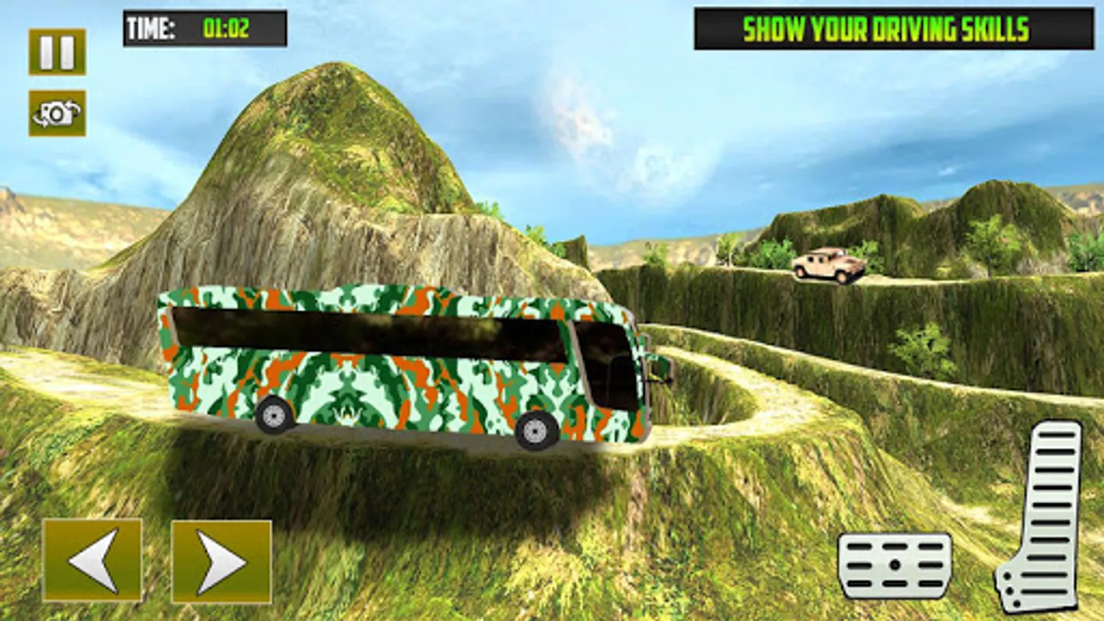 Drive carefully hill climbing Bus Driving Game because whenever you crash into bumpy slim mountains your bus will damaged and therefore the military soldier will scream. confirm you drop your passengers before your Military Bus is totally broken and damaged!