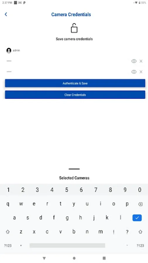 • Save camera credential to application