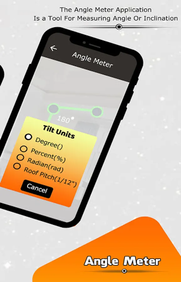 ● Show angle in degree, inclination in percent, roof pitch or inches per foot (:12)