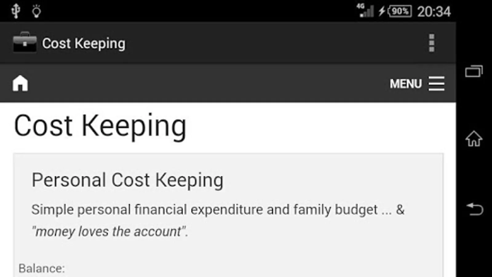 Cost Keeping is a pleasant and convenient way to manage my income and expenses: joint accounting, interactive reports, a built-in calculator.