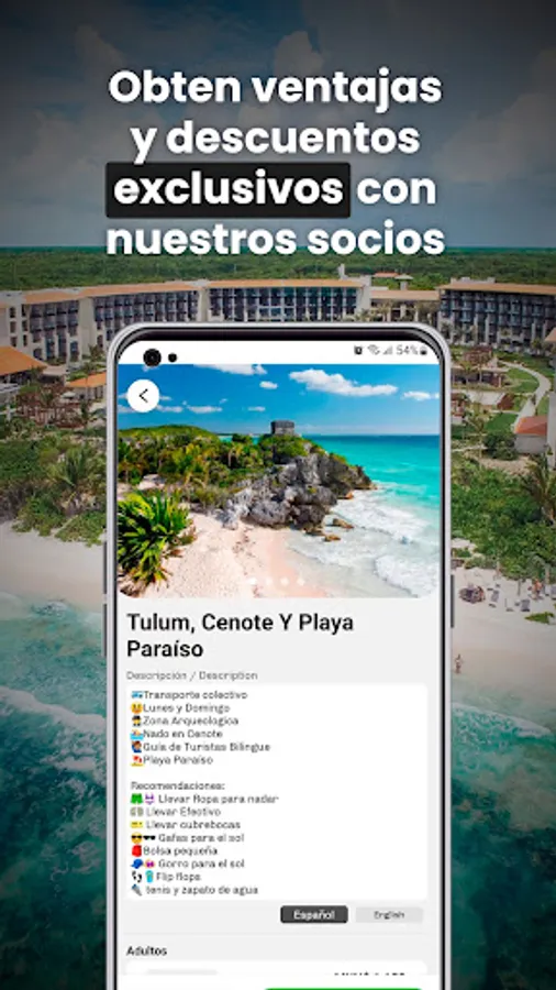 Get ready to live unforgettable adventures in Cancun! Download our tour app today and start exploring the wonders that this paradise has to offer. Discover the beauty of its beaches, immerse yourself in the crystal clear waters, enter the jungle and be surprised by the rich history and culture of the region. All this and more awaits you in Cancun, and our tours app will be your perfect companion on this incredible adventure.