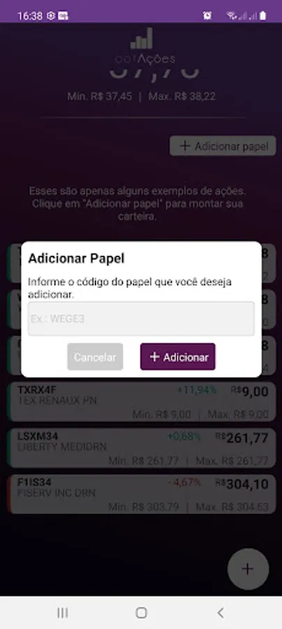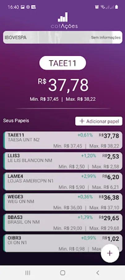 CotAções was tailor-made for those who like to keep an eye on their assets. In addition to allowing you to check the current value, the application offers a series of tools that can make your life easier in relation to the subject.