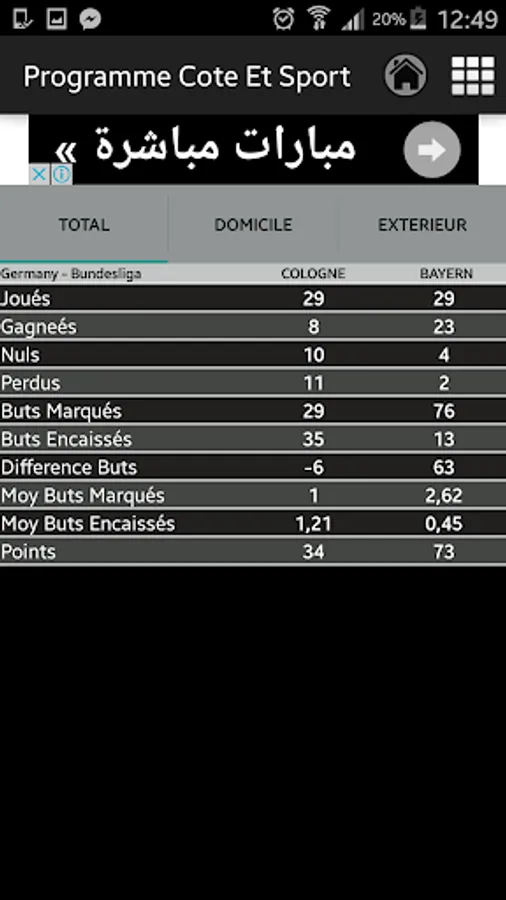 - view the statistics of all matches (goals scored and cashed at home or away)