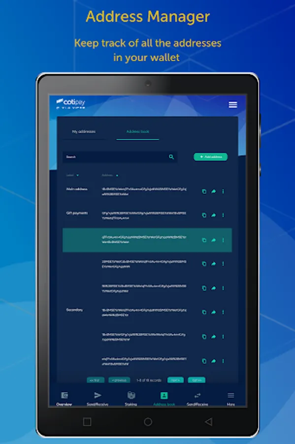 An address book has been created to help you manage your COTI addresses in the most efficient way