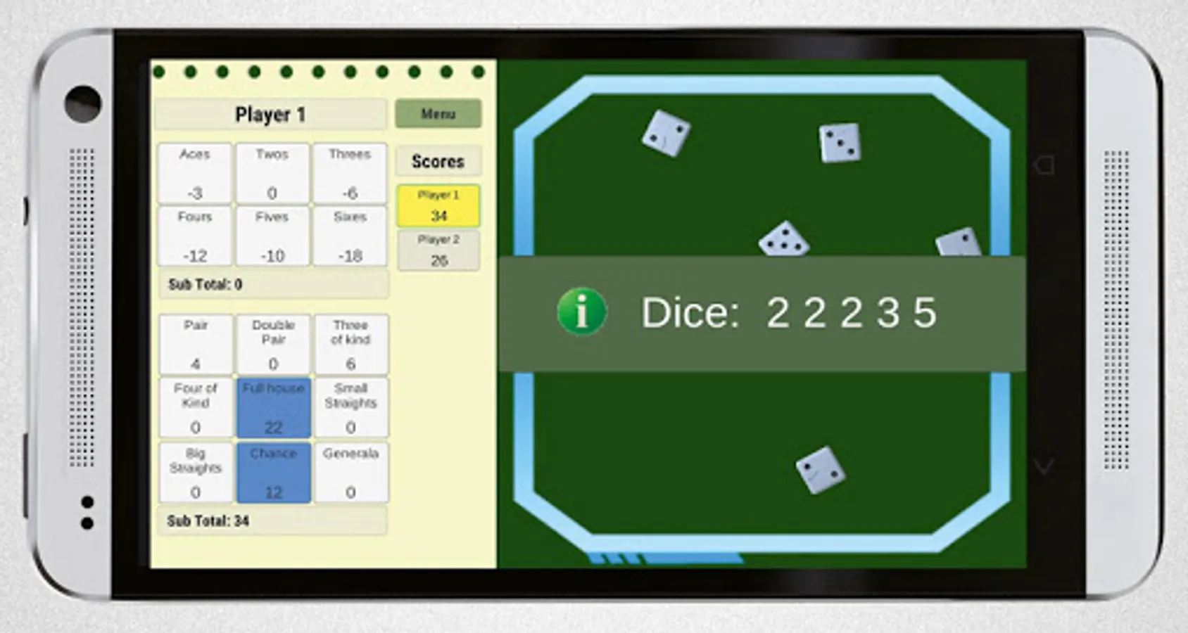 Generala Dice also known as "Dados" is a game played by two or more players.