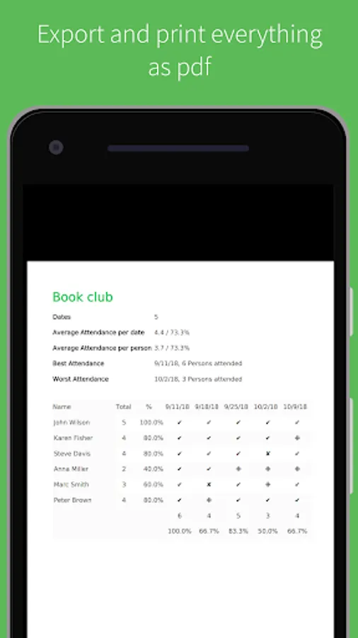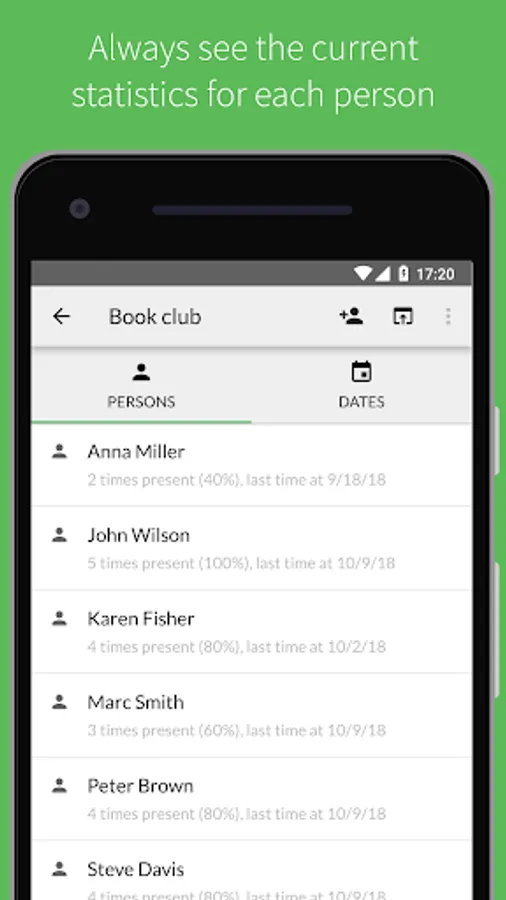 - Statistics: Analyze the attendance with the help of statistics right in the app.
