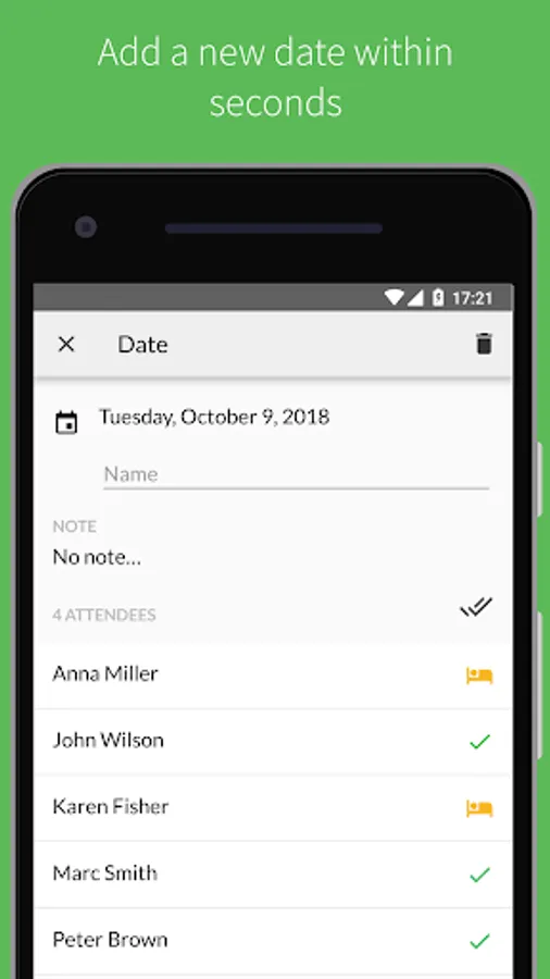 - Attendance: Set the attendance of each person with any of the three states: attending, excused or absent.