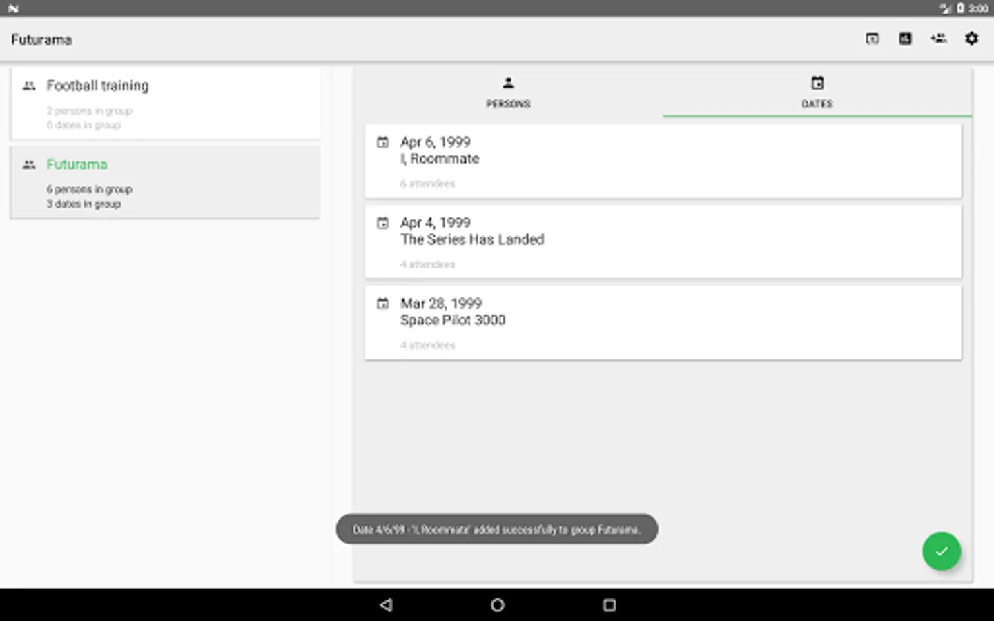 - Group management: manage your groups easily from your phone, tablet or the web. Each group has a list of persons and appointments.