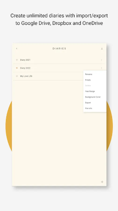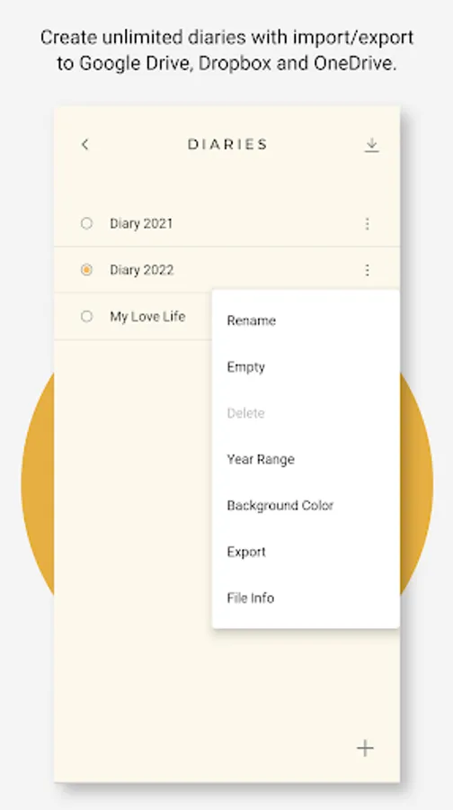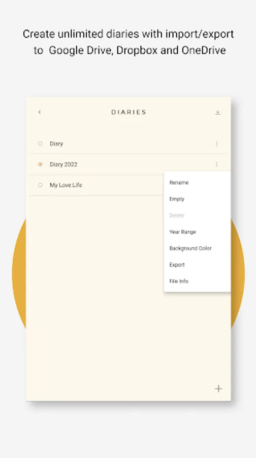 Export/Import your diaries to Google Drive, Dropbox and OneDrive.
