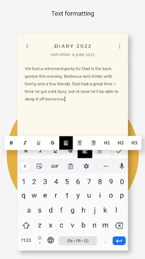 Chronicle your life, your memories, thoughts and feelings, and those special moments, with this intuitive and very easy to use free diary app with optional pin and biometric lock. You can create unlimited diaries and entries, delete, rename or empty them, and export and import your diaries to and from Google Drive, Dropbox and OneDrive.