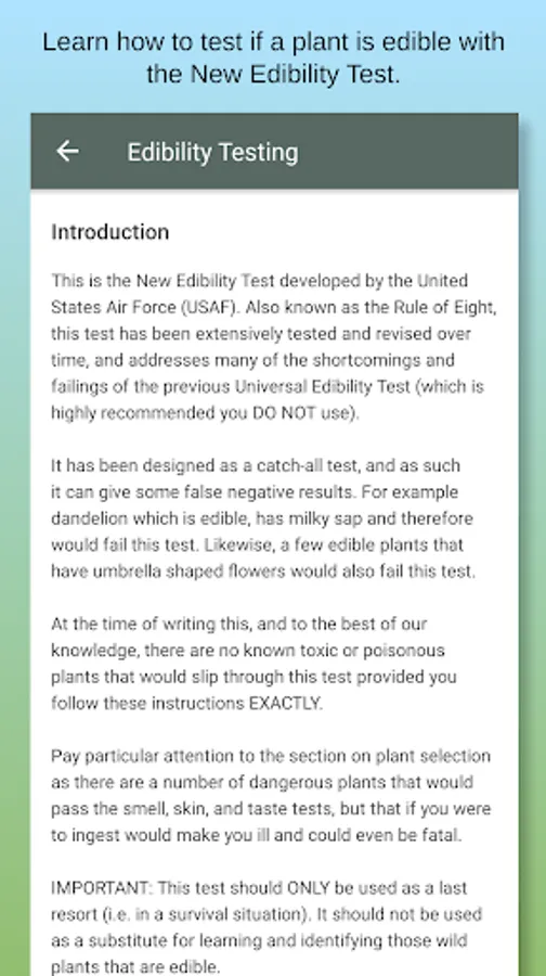 • Plant edibility testing guide.