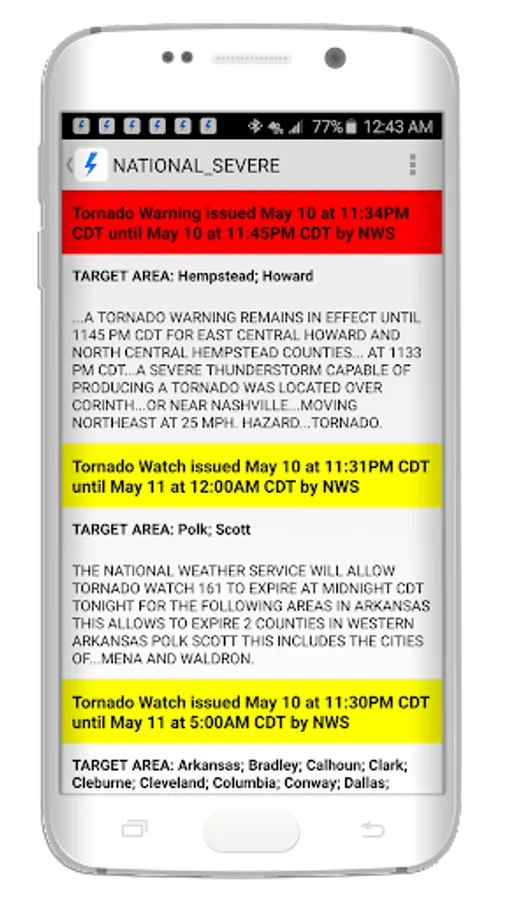 GET ALERTS PUSHED TO YOUR DEVICE WITHIN MINUTES FROM THE TIME THE NWS ISSUES THEM! WE PUSH ALERTS FASTER THEN ANY OTHER APP!