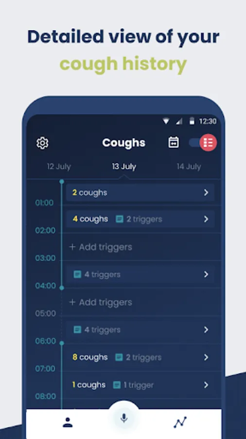 Cough is one of the most common symptoms that leads people to visit a healthcare provider. CoughTracker helps people to track when they are coughing and when their cough becomes more or less frequent.
