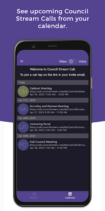 • Join other participants no matter what device they are on. They can be using the Council Stream Call app on other platforms or the web based version. All they need is the invite email to get started.