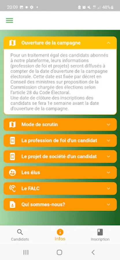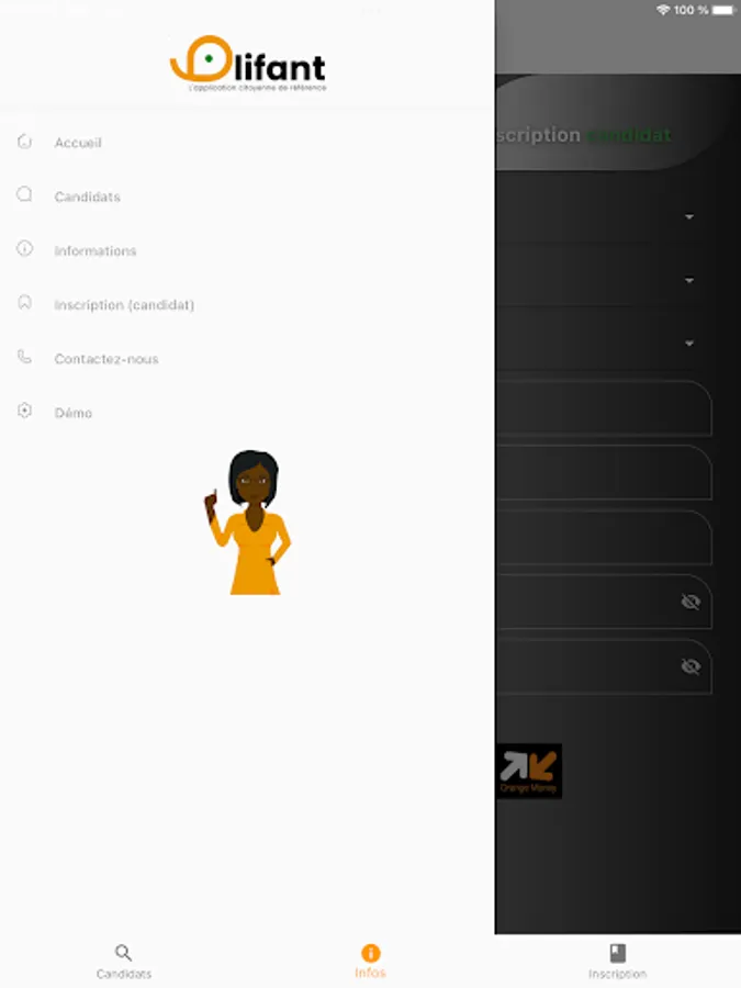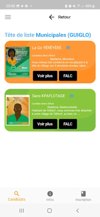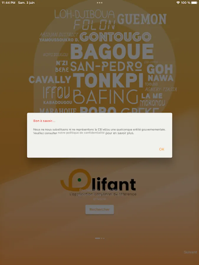"Olifant election" is the reference citizen application that makes visible the principle of profession of faith, the social project and the program of the candidates for an election so as to make them hatch, make them digestible and easily accessible (translation in a language understandable by all in different media: texts, audios and/or videos in local languages).