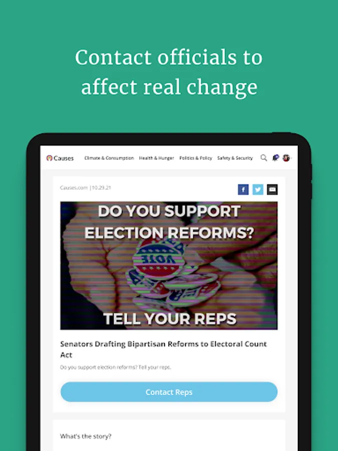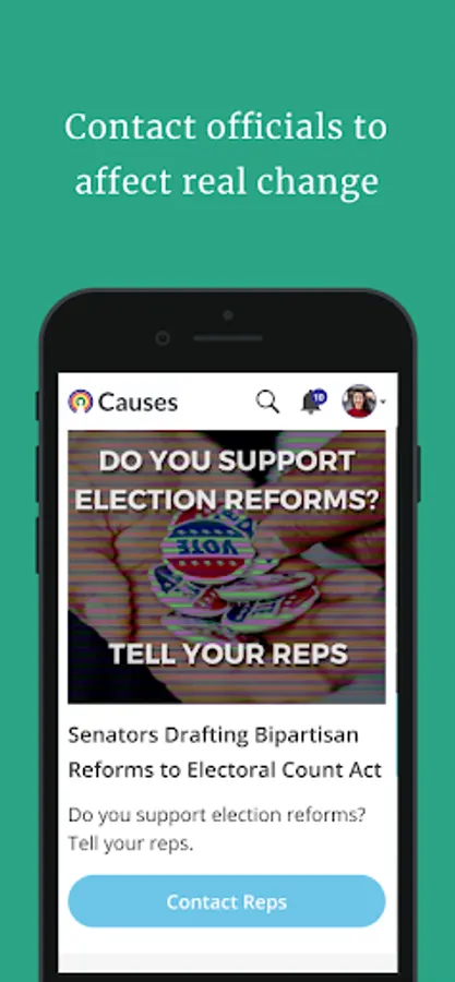 Causes is owned by Countable Corporation and is based in Oakland, California. Our app is hand-crafted by a diverse team of Americans committed to impacting the world. Our main Cause is a simple one: use technology to amplify your voice about what matters most to you.