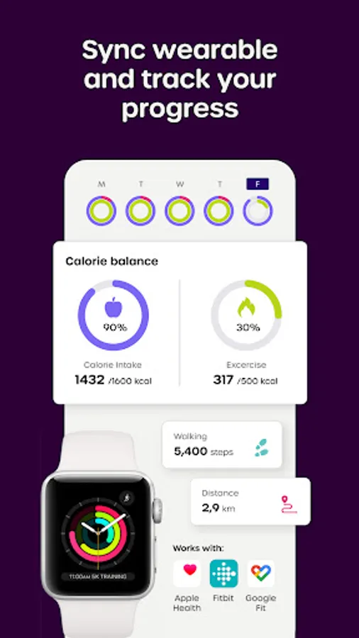 4- Seamlessly track your calories and key health metrics with our Fitness tracker integrations. (Fitbit, Apple Health, Google Fit).