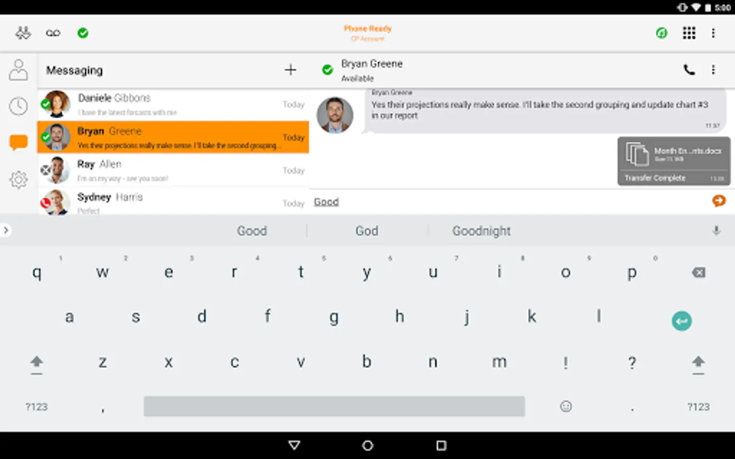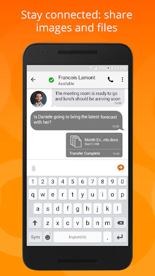 Stay connected wherever you go, leveraging your call server or VoIP service. Includes HD audio and video support, along with XMPP & SIP SIMPLE support.