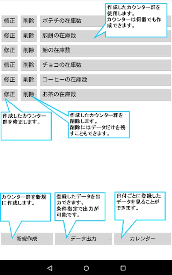 カウンターを項目別に複数作成できるマルチカウンターアプリです。