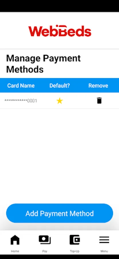 • Perform cashless purchases in the WebBeds canteen