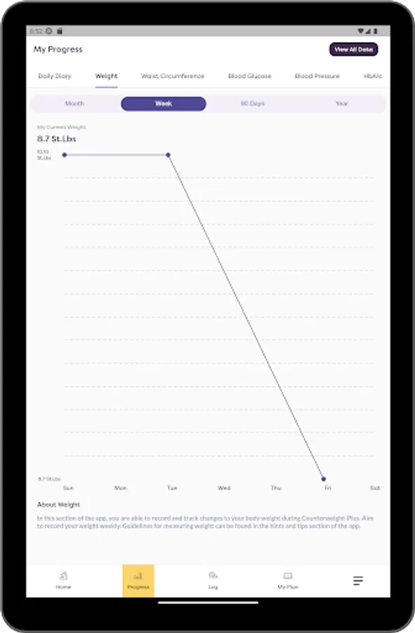 * Ability to log your weight, mood, blood glucose and HbA1c measurements and more