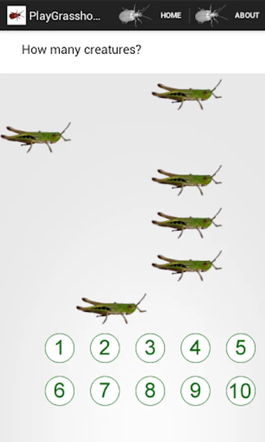 The screens have various numbers of creature - count how many there are and press the correct button. The game tells you if you are correct and you can try again if you are wrong or go to another challenge with a different number and type of creature.