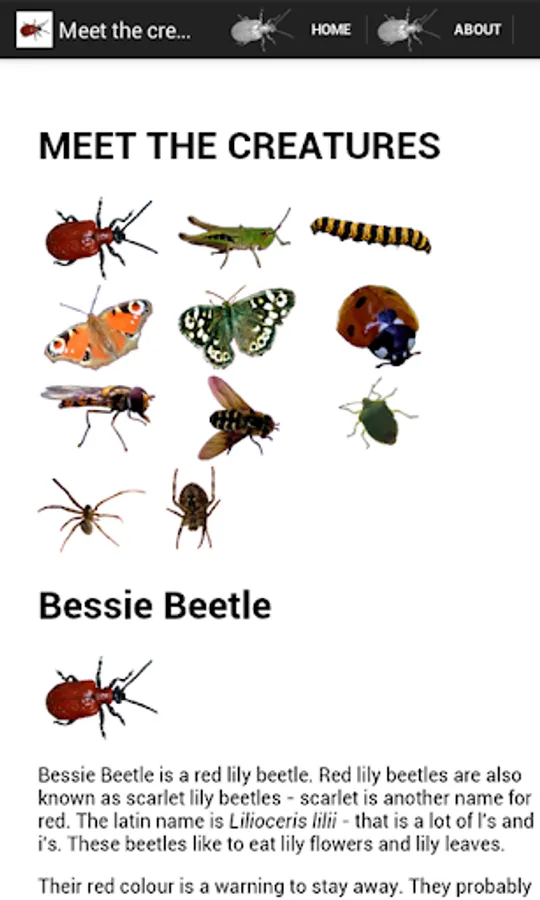 Children also like learning facts – think of their interest in dinosaurs and how they pick up and remember all the long complicated names. ‘Meet the creatures’ has details of the creatures encountered when playing the game and this section encourages them to know about them.