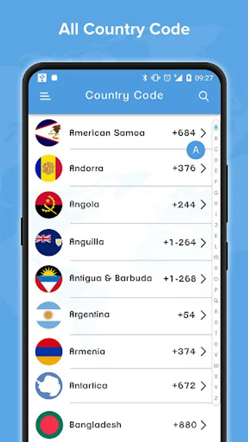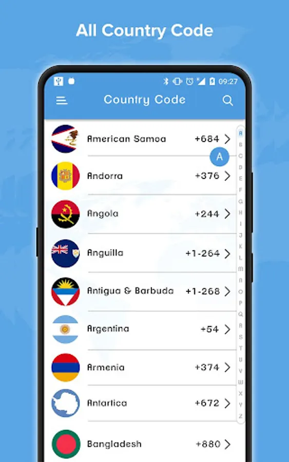 Country Code Number - Internat app is very informative for you because you can increase your general knowledge, and gives you information about the country’s capital state, currency, and time zone of that country. This application gives you correct information related to phone pin code, currency, and country code. Search for a country by typing its initial alphabet or by typing its country code. This application is easy to use and very helpful for all.