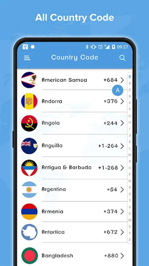 Almost all countries within the world are in your pocket with the easy and smooth interface for your android devices. This application provides you with other information like Country prefix, Phone Code, Country Capital, Country Currency, Country Time Zone, Country ISO Code, Universal Time Coordinated & Country Flag. The calling number will help you to dial codes and make long-distance phone calls with your friends, family, and business partners around the globe.