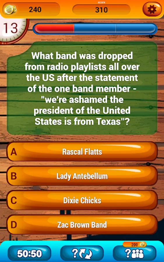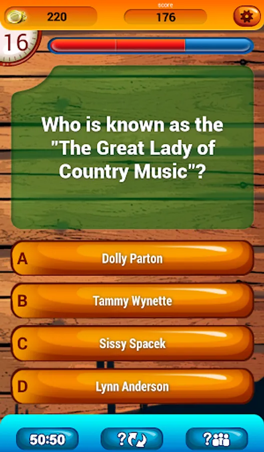➜ Play “country music quiz”, choose one of 4 offered answers and do it fast, the clock is ticking;