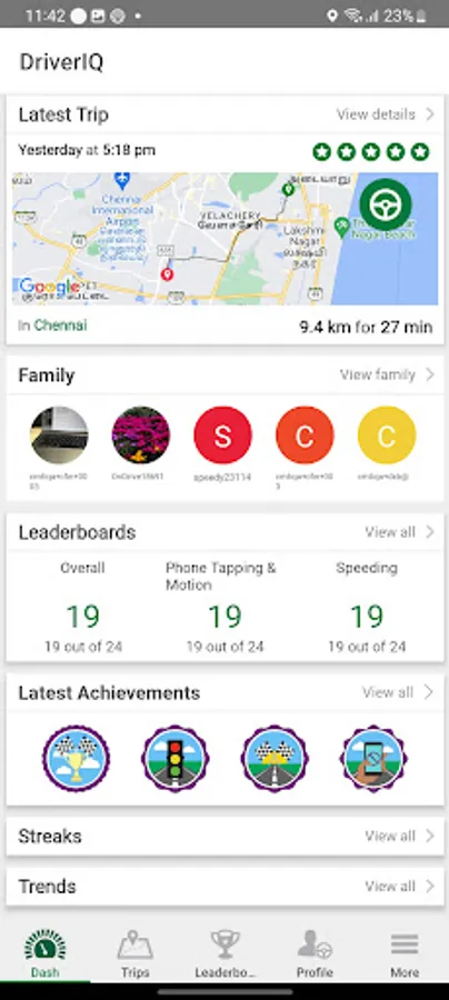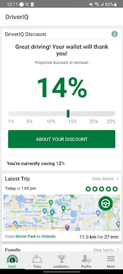 • Family Sharing allows you to compete with friends and family to be the safest driver (there’s a leaderboard with a space for your name at the top), and provides opportunities to coach your teen drivers