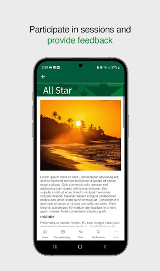 Keep communications and event details with you on the go. The app provides a centralized location to obtain information, receive notifications, ask questions and interact with the field. The app will also be used at live events.