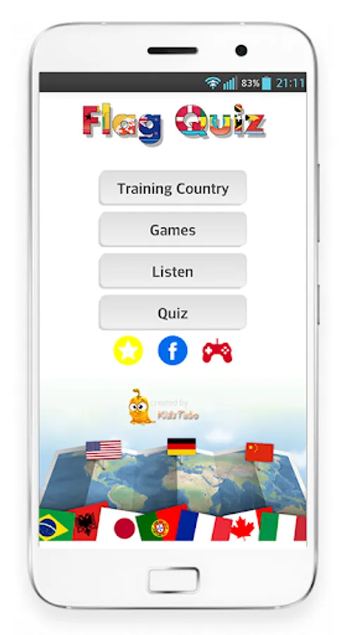 Learn Country - Flag Quiz which will allow you to quickly learn all the flags of all countries of the world!