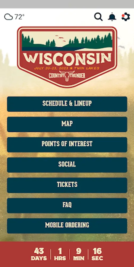 The official app for Country Thunder Wisconsin 2023. The Country Wisconsin app is your source for all the latest festival information. See who is playing when, find food options, and information on all of our awesome vendors. Maps, FAQs, and more are included.
