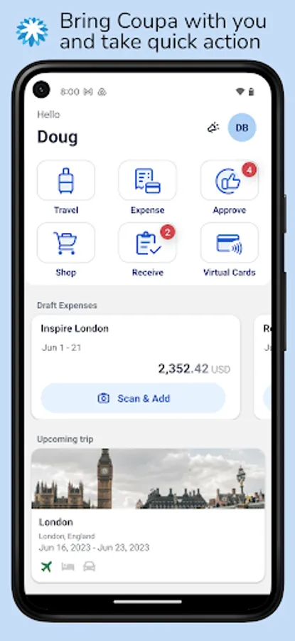 Use Coupa’s Business Spend Management mobile app for rapid access, personalized for you: