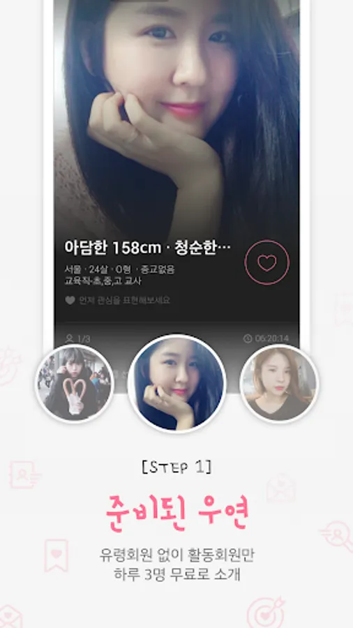 3. If your profile is approved, you will be introduced to 3 people at 6 o'clock every day.