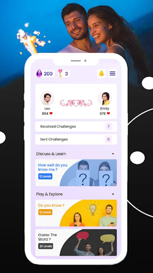 Looking for a fun way to spend time with your significant other? Look no further than our couple games app! Our couple app features a variety of conversation starters and couple activities that are designed to help you and your partner connect and strengthen your relationship. From icebreaker questions to couple quizzes and challenges, there's something for everyone. Whether you're looking for a romantic night in or a way to break the ice on a first date, our couples app has you covered.