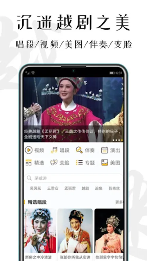 Yue Opera is a professional Yue opera mobile phone software that includes classic arias, videos, beautiful pictures, accompaniment, information and other content, providing features such as display, sharing, communication, display and costume change. A comprehensive and in-depth experience for Yue opera fans around the world A platform for appreciating the art of Yue opera.