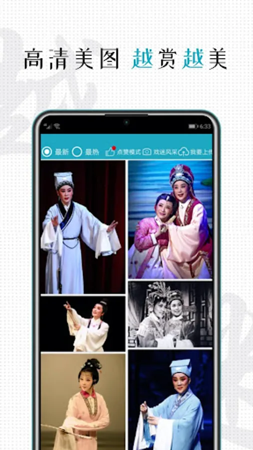 (3) Large-scale high-definition photographs of Yue opera, such as still images of Yue opera movies and TV stage plays, art photographs, and lifelong photographs of actors. Similar modes are useful for cheering on your favorite Yue opera idols, raising your rankings, and enjoying beautiful pictures of idols with more people.