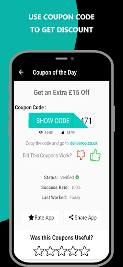 Enjoy instant savings on your purchase and get exclusive offers, deals, promo codes and discounts on your shopping at Deliveroo and save your time by using this simple coupon codes app.