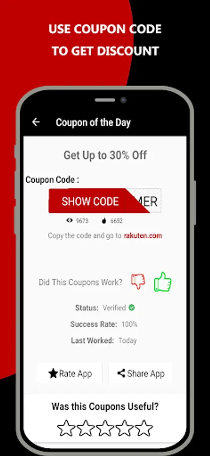 Enjoy instant savings on your purchase and get exclusive offers, deals, promo codes and discounts on your shopping at Rakuten and save your time by using this simple coupon codes app.