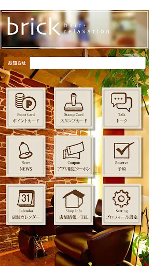 We will deliver the latest information, including announcements from [brick hair + relaxation] and event notices.