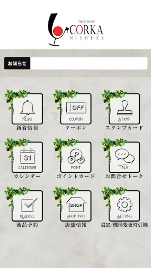 · You can receive the latest information from 【CORKA Nishiki】 by push notification.