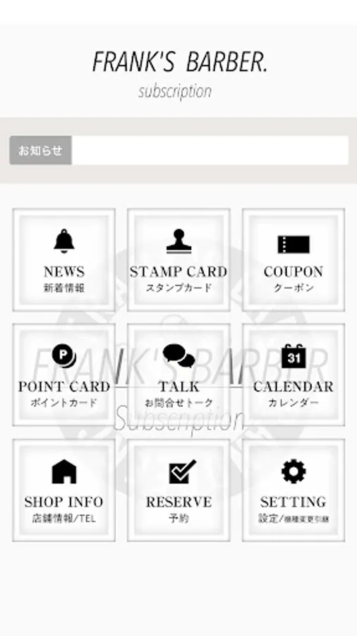 ・ You can receive the latest information from [FRANK'S BARBER & BEER CLUB] by push notification.