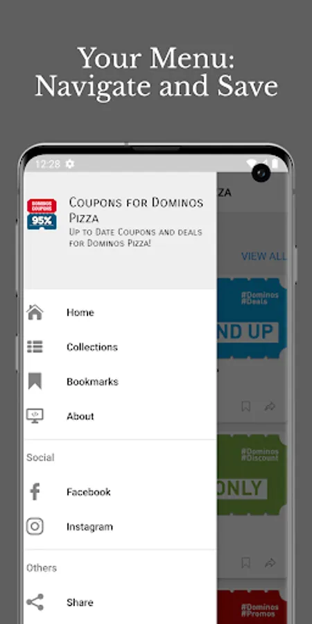 Disclaimer : This is an unofficial Domino’s Pizza app, it is not related to any other apps or companies except for our main brand Coupon Apps.