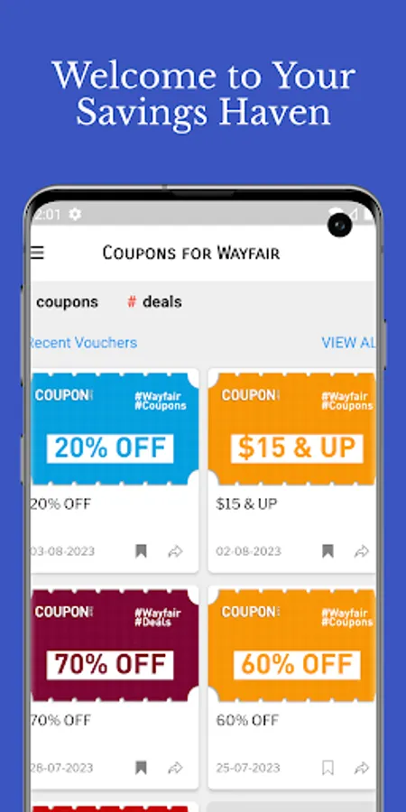 If you are looking for hot deals and many vouchers, don't worry. At our Wayfair coupons app, we always update it with the latest Wayfair hot deals offers and big discounts to some of their top products and brands and great deals . So check it back daily.