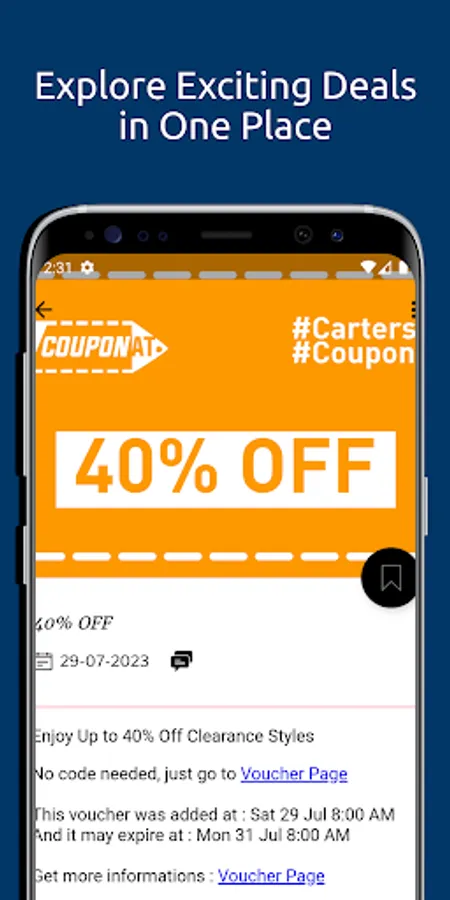 This promo code discount app lets you find good coupons and hot deals for baby clothing on carters.com in black Friday, xmas, noel, new year and all others important shopping dates
