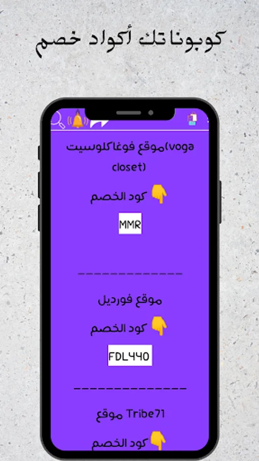 The application of coupons and codes for several Arab and international stores offers you coupons and codes to save your money when buying from online stores for several Arab countries from the Middle East.