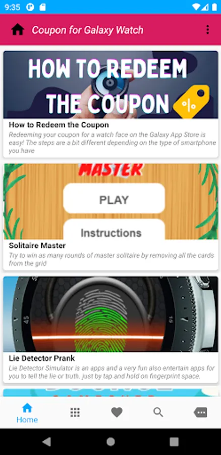 This app gives you some coupons to get Apps, Games and Watchface on your Galaxy watch/Samsung watch.